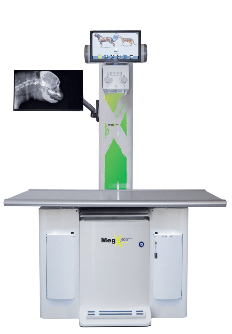 L’ appareil de radiologie Megx 400 HF+ PREMIUM est doté d’un générateur haute fréquence dernière génération , d’un tube à anode tournante Toshiba à double foyers permettant une aide au diagnostic radiologique pour les petits animaux ( NAC) , les chats et les chiens de toutes races.